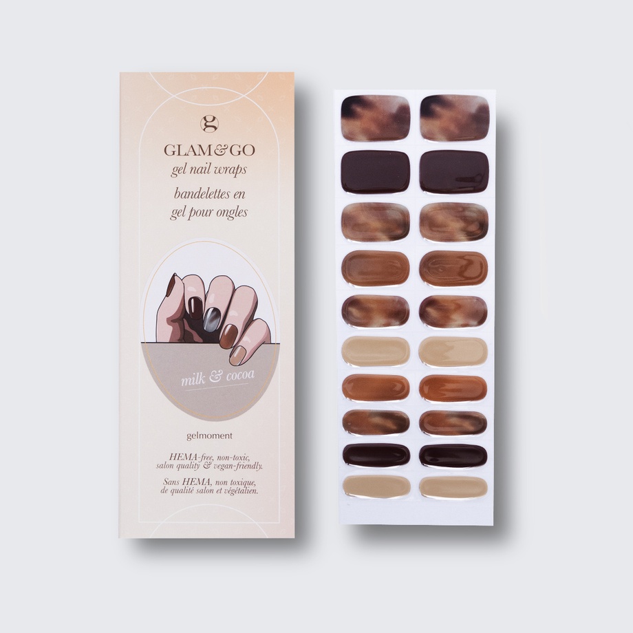 Plus, not only do GLAM & GO gel nail wraps provide the same glossy finish you know and love from our regular gel polish, but they are also HEMA FREE and have a wear time of up to 14+ days.