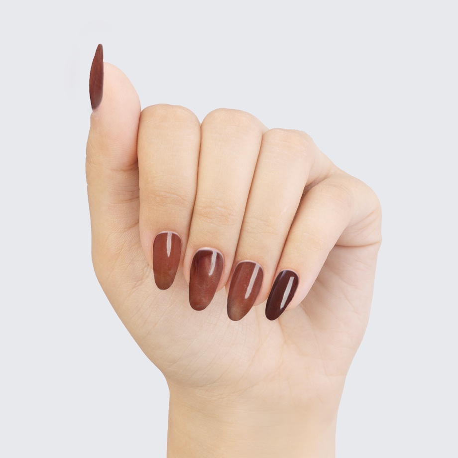 Our GLAM & GO gel nail wraps ensure that no matter how complex your chosen nail design, the application process remains incredibly simple. Our GLAM & GO gel nail wraps require no glue, base coat, or top coat—just peel them off the packaging, apply them to your nail, trim to size, cure twice, and voilà!